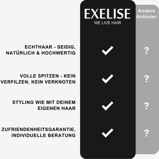 Für alle Haartypen geeignet. Du findest garantiert auch deine Farbe und Länge. Benötigst Du Hilfe bei der Auswahl, sind wir persönlich für Dich da.